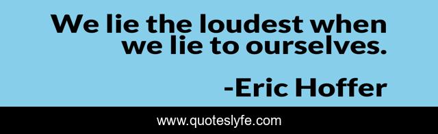 This page presents the quote "We lie the loudest when we lie to ourselves.". Author of this quote is Eric Hoffer. .