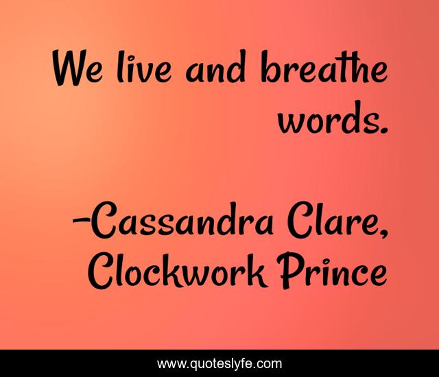 "Cassandra Clare, Clockwork Prince Quotes." Quoteslyfe.com, 2025. Tue. 09 Dec. 2025. <https://www.quoteslyfe.com/quote/We-live-and-breathe-words-42688>.