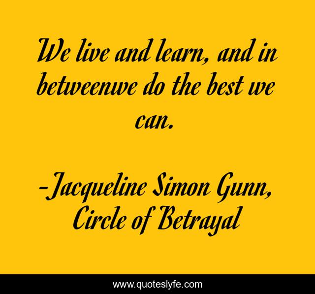 This page presents the quote "We live and learn, and in betweenwe do the best we can.". Author of this quote is Jacqueline Simon Gunn, Circle of Betrayal. This quote is about life-philosophy, life, life-lessons,.