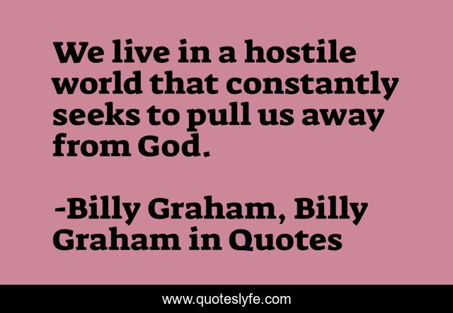 This page presents the quote "We live in a hostile world that constantly seeks to pull us away from God.". Author of this quote is Billy Graham, Billy Graham in Quotes. This quote is about the-world, billy-graham,.