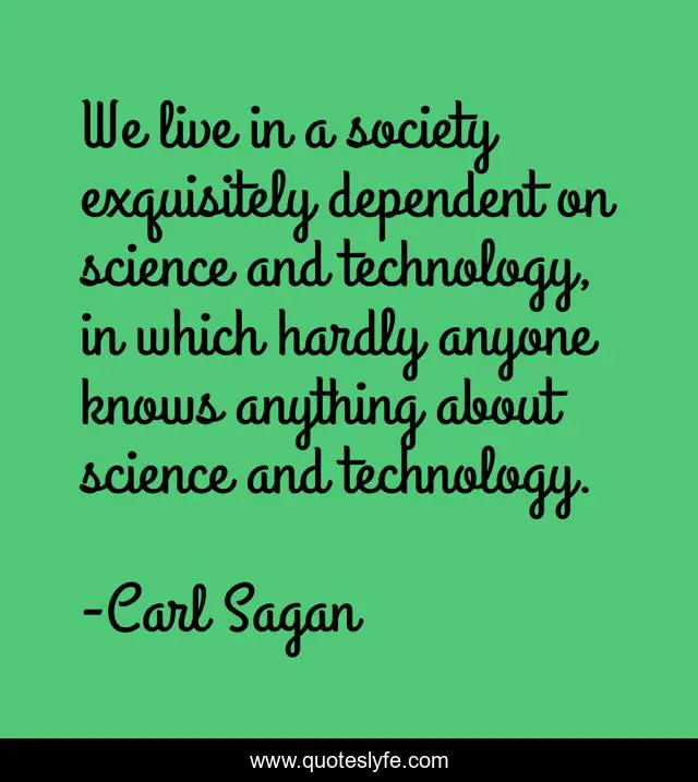 This page presents the quote "We live in a society exquisitely dependent on science and technology, in which hardly anyone knows anything about science and technology.". Author of this quote is Carl Sagan. This quote is about society, live, technology,.