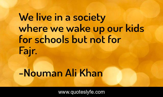 This page presents the quote "We live in a society where we wake up our kids for schools but not for Fajr.". Author of this quote is Nouman Ali Khan. This quote is about society, fajr,.