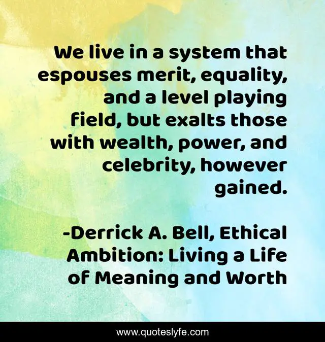 "Derrick A. Bell, Ethical Ambition: Living a Life of Meaning and Worth Quotes." Quoteslyfe.com, 2025. Fri. 05 Dec. 2025. <https://www.quoteslyfe.com/quote/We-live-in-a-system-that-espouses-32203>.