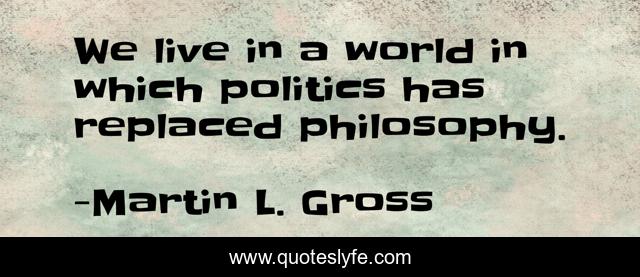 This page presents the quote "We live in a world in which politics has replaced philosophy.". Author of this quote is Martin L. Gross. This quote is about world, live, philosophy,.