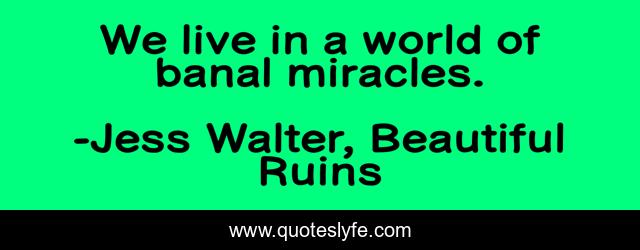 This page presents the quote "We live in a world of banal miracles.". Author of this quote is Jess Walter, Beautiful Ruins. .