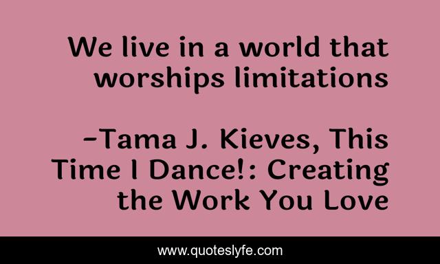This page presents the quote "We live in a world that worships limitations". Author of this quote is Tama J. Kieves, This Time I Dance!: Creating the Work You Love. This quote is about limitations, enthusiasm, worship, inspirational,.