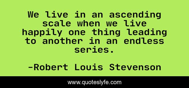 This page presents the quote "We live in an ascending scale when we live happily one thing leading to another in an endless series.". Author of this quote is Robert Louis Stevenson. .