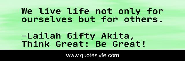 "Lailah Gifty Akita, Think Great: Be Great! Quotes." Quoteslyfe.com, 2025. Sat. 06 Dec. 2025. <https://www.quoteslyfe.com/quote/We-live-life-not-only-for-ourselves-85156>.