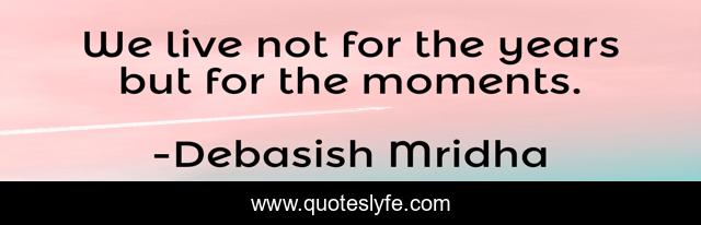 This page presents the quote "We live not for the years but for the moments.". Author of this quote is Debasish Mridha. This quote is about what-matters-in-life, live-for-the-moments, philosophy, debasish-mridha, quotes, inspirational, enthusiasm, debasish-mridha-m-d, why-do-we-live,.