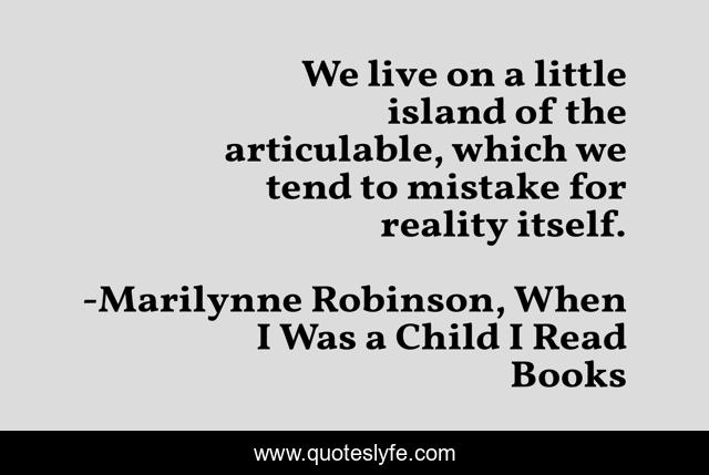 This page presents the quote "We live on a little island of the articulable, which we tend to mistake for reality itself.". Author of this quote is Marilynne Robinson, When I Was a Child I Read Books. This quote is about knowledge, reality,.