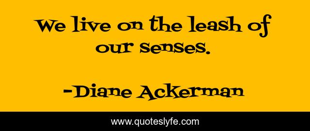This page presents the quote "We live on the leash of our senses.". Author of this quote is Diane Ackerman. .