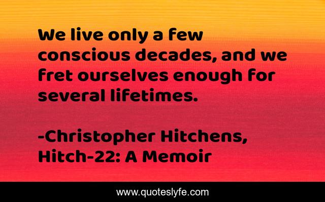 This page presents the quote "We live only a few conscious decades, and we fret ourselves enough for several lifetimes.". Author of this quote is Christopher Hitchens, Hitch-22: A Memoir. This quote is about life, anxiety,.