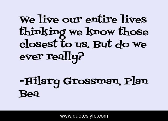 This page presents the quote "We live our entire lives thinking we know those closest to us. But do we ever really?". Author of this quote is Hilary Grossman, Plan Bea. This quote is about life, family-relationshipsl, families, perspective,.