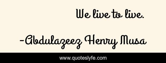 This page presents the quote "We live to live.". Author of this quote is Abdulazeez Henry Musa. .