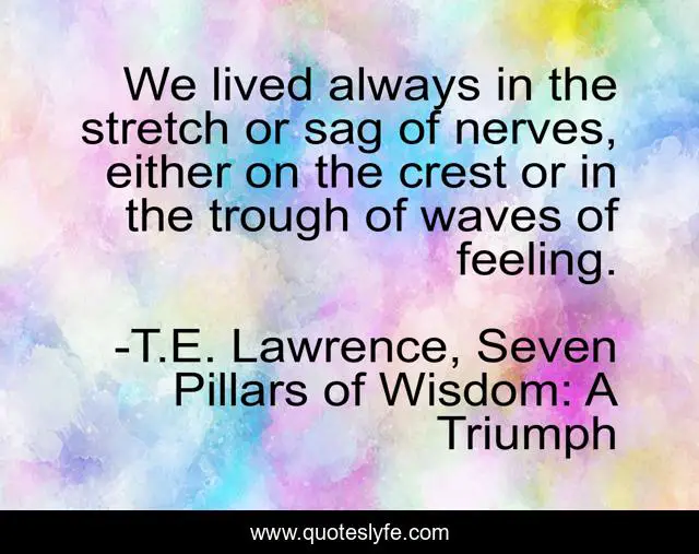 This page presents the quote "We lived always in the stretch or sag of nerves, either on the crest or in the trough of waves of feeling.". Author of this quote is T.E. Lawrence, Seven Pillars of Wisdom: A Triumph. This quote is about emotion, feeling,.
