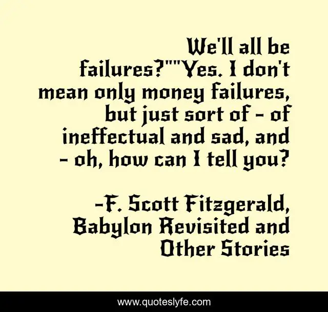 "F. Scott Fitzgerald, Babylon Revisited and Other Stories Quotes." Quoteslyfe.com, 2025. Fri. 05 Dec. 2025. <https://www.quoteslyfe.com/quote/We-ll-all-be-failures-Yes-I-145223>.