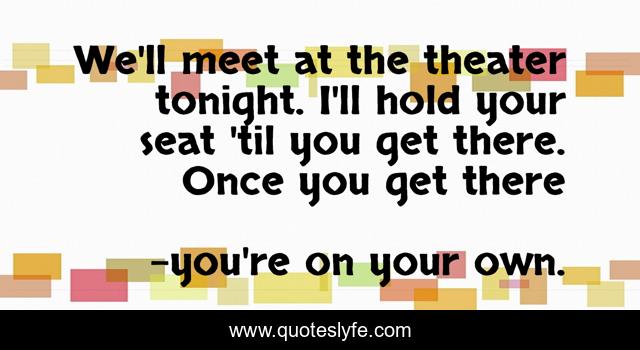 This page presents the quote "We'll meet at the theater tonight. I'll hold your seat 'til you get there. Once you get there". Author of this quote is you're on your own.. .