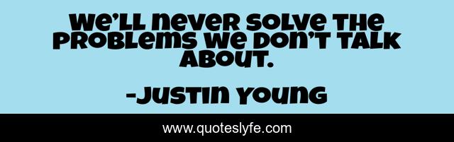 This page presents the quote "We’ll never solve the problems we don’t talk about.". Author of this quote is Justin Young. This quote is about communication, getting-along-with-others, parenting, leadership, self-help, problem-solving,.