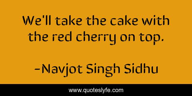 This page presents the quote "We'll take the cake with the red cherry on top.". Author of this quote is Navjot Singh Sidhu. This quote is about cake, cherry, red,.