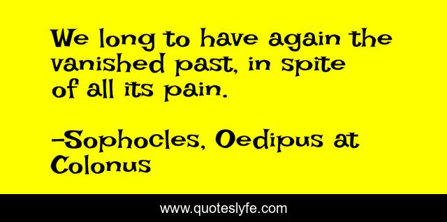 This page presents the quote "We long to have again the vanished past, in spite of all its pain.". Author of this quote is Sophocles, Oedipus at Colonus. This quote is about nostalgia, the-past,.