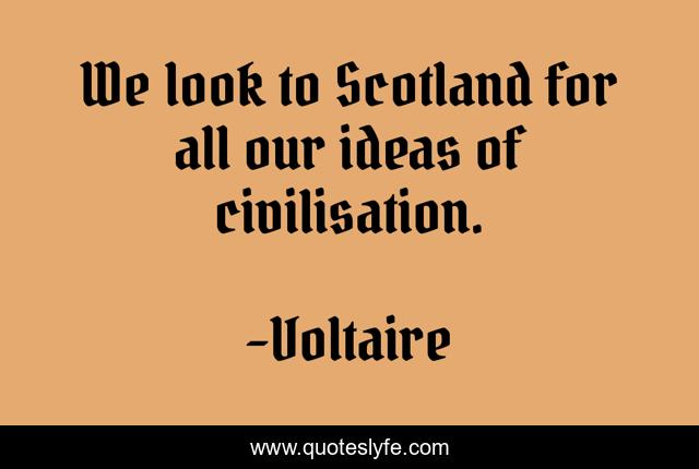 This page presents the quote "We look to Scotland for all our ideas of civilisation.". Author of this quote is Voltaire. This quote is about civilization, scotland,.