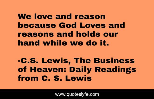 This page presents the quote "We love and reason because God Loves and reasons and holds our hand while we do it.". Author of this quote is C.S. Lewis, The Business of Heaven: Daily Readings from C. S. Lewis. This quote is about god, reason, love, affection,.
