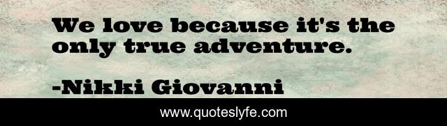 This page presents the quote "We love because it's the only true adventure.". Author of this quote is Nikki Giovanni. This quote is about because, true, adventure,.