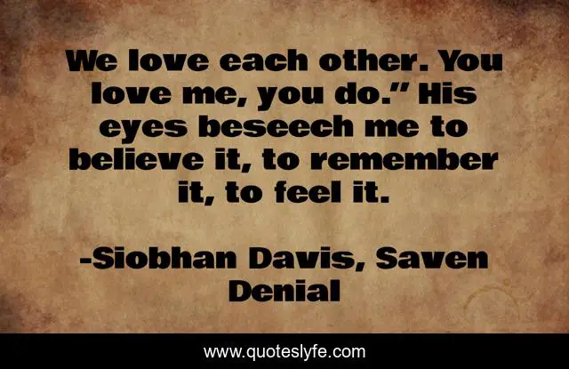 "Siobhan Davis, Saven Denial Quotes." Quoteslyfe.com, 2025. Mon. 08 Dec. 2025. <https://www.quoteslyfe.com/quote/We-love-each-other-You-love-me-246273>.