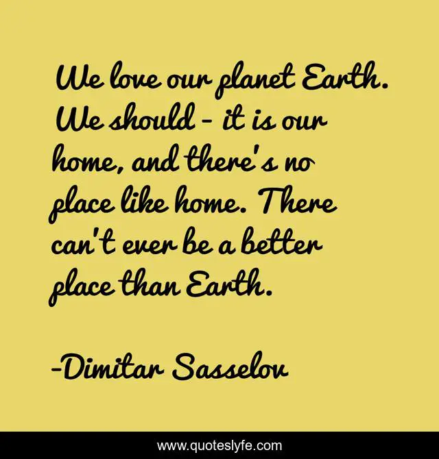 This page presents the quote "We love our planet Earth. We should - it is our home, and there's no place like home. There can't ever be a better place than Earth.". Author of this quote is Dimitar Sasselov. This quote is about better, earth, love, affection,.