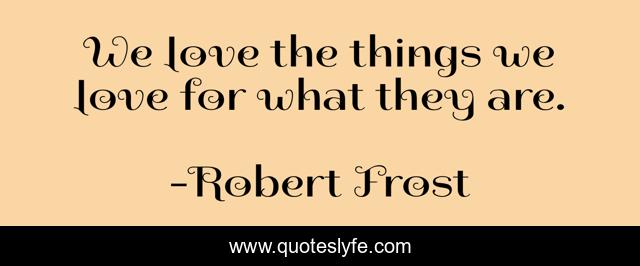"Robert Frost Quotes." Quoteslyfe.com, 2025. Tue. 09 Dec. 2025. <https://www.quoteslyfe.com/quote/We-love-the-things-we-love-for-33>.