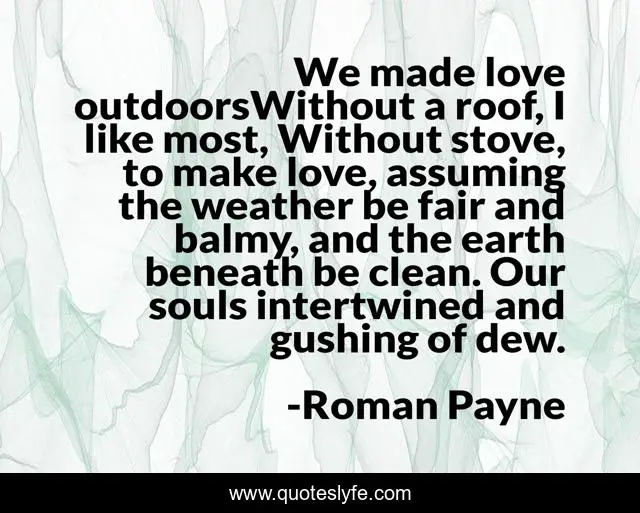 "Roman Payne Quotes." Quoteslyfe.com, 2025. Tue. 09 Dec. 2025. <https://www.quoteslyfe.com/quote/We-made-love-outdoorsWithout-a-roof-I-25005>.