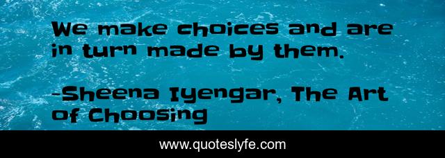 "Sheena Iyengar, The Art of Choosing Quotes." Quoteslyfe.com, 2025. Sat. 13 Dec. 2025. <https://www.quoteslyfe.com/quote/We-make-choices-and-are-in-turn-105798>.