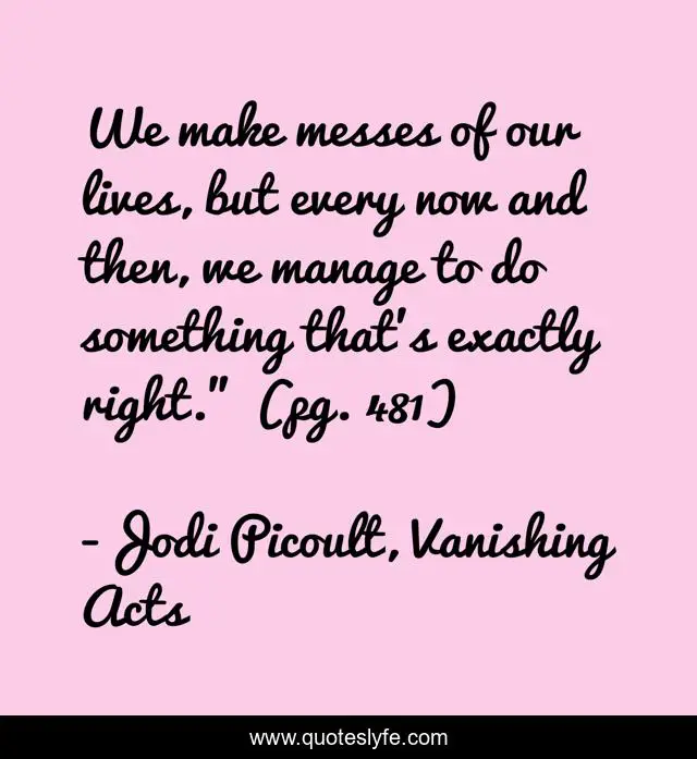 This page presents the quote "We make messes of our lives, but every now and then, we manage to do something that's exactly right." (pg. 481)". Author of this quote is Jodi Picoult, Vanishing Acts. .
