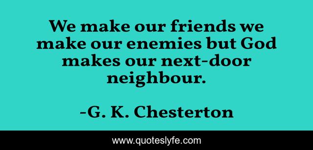 This page presents the quote "We make our friends we make our enemies but God makes our next-door neighbour.". Author of this quote is G. K. Chesterton. This quote is about friends, friendship,.