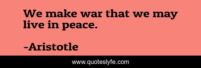 This page presents the quote "We make war that we may live in peace.". Author of this quote is Aristotle. This quote is about may, live, peace,.