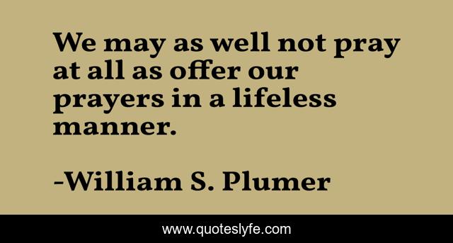 This page presents the quote "We may as well not pray at all as offer our prayers in a lifeless manner.". Author of this quote is William S. Plumer. .
