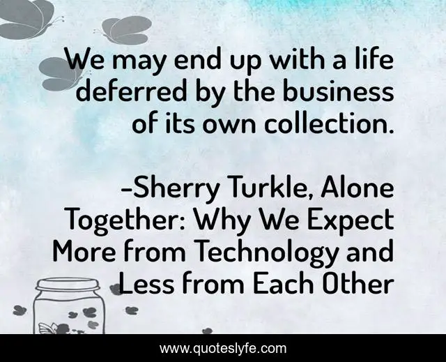 "Sherry Turkle, Alone Together: Why We Expect More from Technology and Less from Each Other Quotes." Quoteslyfe.com, 2025. Fri. 05 Dec. 2025. <https://www.quoteslyfe.com/quote/We-may-end-up-with-a-life-236919>.