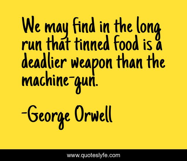 This page presents the quote "We may find in the long run that tinned food is a deadlier weapon than the machine-gun.". Author of this quote is George Orwell. This quote is about run, find, long,.