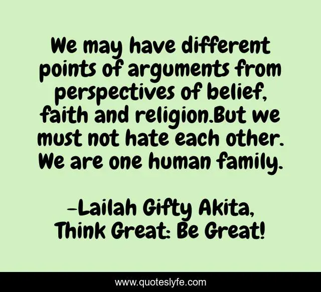 "Lailah Gifty Akita, Think Great: Be Great! Quotes." Quoteslyfe.com, 2025. Sat. 06 Dec. 2025. <https://www.quoteslyfe.com/quote/We-may-have-different-points-of-arguments-62499>.