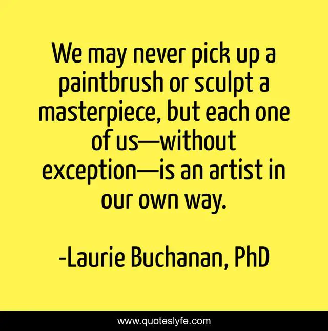 "Laurie Buchanan, PhD Quotes." Quoteslyfe.com, 2025. Mon. 08 Dec. 2025. <https://www.quoteslyfe.com/quote/We-may-never-pick-up-a-paintbrush-204665>.