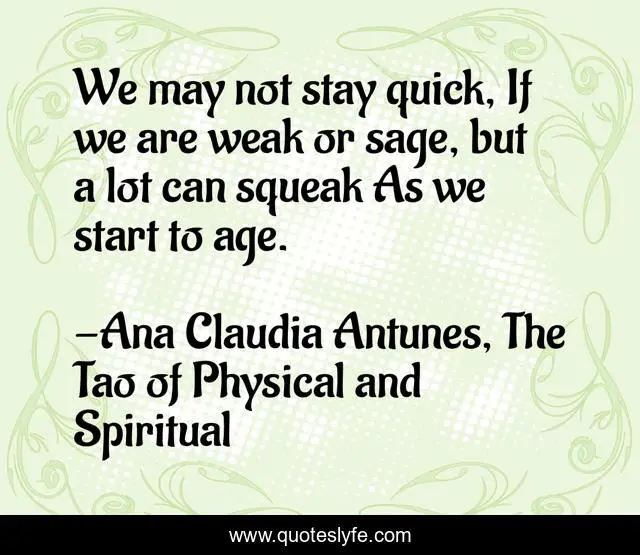 "Ana Claudia Antunes, The Tao of Physical and Spiritual Quotes." Quoteslyfe.com, 2025. Sat. 06 Dec. 2025. <https://www.quoteslyfe.com/quote/We-may-not-stay-quick-If-we-22389>.
