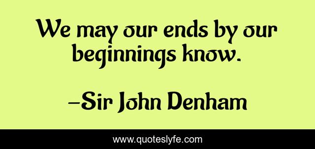 "Sir John Denham Quotes." Quoteslyfe.com, 2025. Tue. 09 Dec. 2025. <https://www.quoteslyfe.com/quote/We-may-our-ends-by-our-beginnings-278931>.