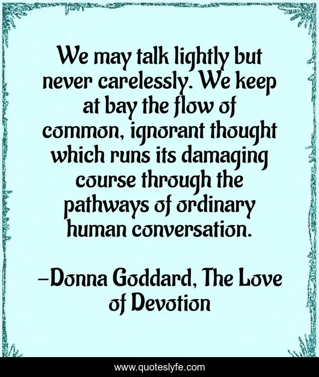 "Donna Goddard, The Love of Devotion Quotes." Quoteslyfe.com, 2025. Sun. 07 Dec. 2025. <https://www.quoteslyfe.com/quote/We-may-talk-lightly-but-never-carelessly-44493>.