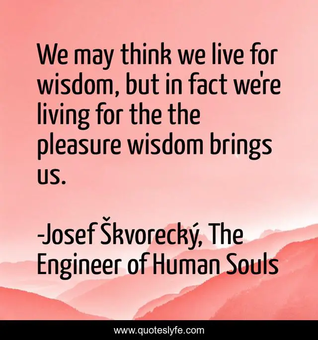 This page presents the quote "We may think we live for wisdom, but in fact we're living for the the pleasure wisdom brings us.". Author of this quote is Josef Škvorecký, The Engineer of Human Souls. .