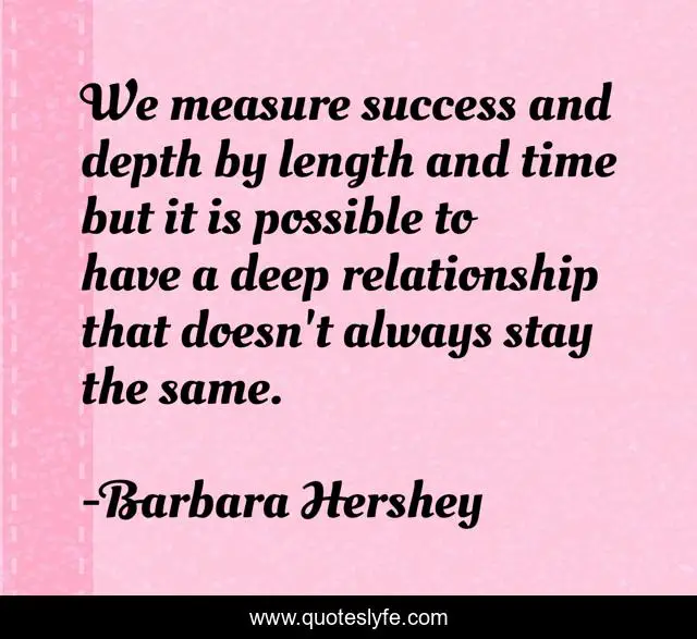 This page presents the quote "We measure success and depth by length and time but it is possible to have a deep relationship that doesn't always stay the same.". Author of this quote is Barbara Hershey. .