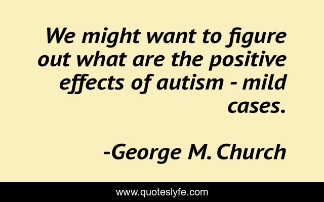 This page presents the quote "We might want to figure out what are the positive effects of autism - mild cases.". Author of this quote is George M. Church. This quote is about might, autism,.
