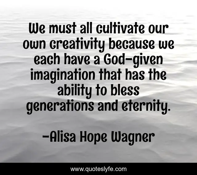 This page presents the quote "We must all cultivate our own creativity because we each have a God-given imagination that has the ability to bless generations and eternity.". Author of this quote is Alisa Hope Wagner. This quote is about eternity, god, creativity,.