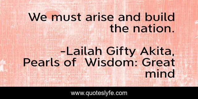 "Lailah Gifty Akita, Pearls of Wisdom: Great mind Quotes." Quoteslyfe.com, 2025. Sat. 06 Dec. 2025. <https://www.quoteslyfe.com/quote/We-must-arise-and-build-the-nation-89689>.