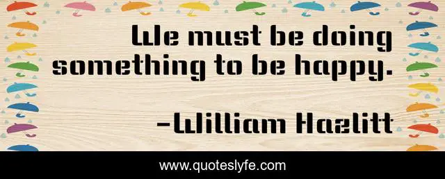 This page presents the quote "We must be doing something to be happy.". Author of this quote is William Hazlitt. .