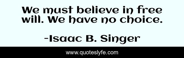 This page presents the quote "We must believe in free will. We have no choice.". Author of this quote is Isaac B. Singer. This quote is about life, isaac-b-singer, free-will, life-and-sayings, quotes, life-sayings,.